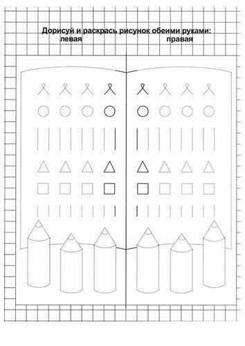 Пишем обеими руками.Полезно упражняться на обе руки, что способствует развитию обоих полушарий головного мозга, а значит и важных способностей и математического, и креативного направлений.